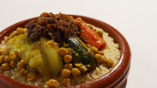 Couscous aux légumes de saison, sauce aux pois chiches, TFAYA...Prix habituel €16,00 EURPrix habituelPrix unitaire / parPrix promotionnel €16,00 EUR -